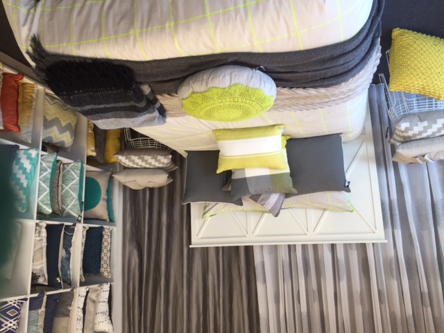I was walking down Oxford Street in Levin recently and I spied this window display in Ashtons, our local soft furnishing shop. The colours that were on the bed to me signified winter with the different greys and a splash of the lovely greens. The other things I like are the clever use of pattern and texture to add that extra bit of interest.